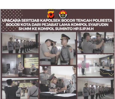 Ditemui selepas upacara Sertijab Kapolsek Bogor tengah, Paur Humas Polresta Bogor Kota Ipda Desti Iryanty SE mengatakan, “Hari ini Rabu 18-3-2020 ada upacara Serah Terima jabatan, di Aula Lantai 2 Mako Polresta kota Bogor, Upacara Serah Terima Jabatan Kapolsek Bogor Tengah Polresta Bogor Kota dari Pejabat Lama Kompol Syaifuddin Gayo, MM untuk Pejabat Baru Kompol Suminto HP, S.IP, MH,