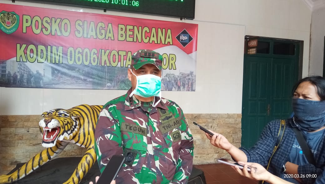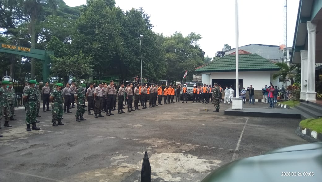 Apel yang digelar di Makodim 0606/Kota Bogor jalan Jend.Sudirman 33 Pabaton kota Bogor ini diikuti sejumlah element pemerintah diantaranya TNI – POLRI, Dinas Kesehatan, BPBD, Dinas Perhubungan serta Satuan Polisi Pamong Praja (Satpol PP) Kota Bogor.(kamis, 26/3/2020)