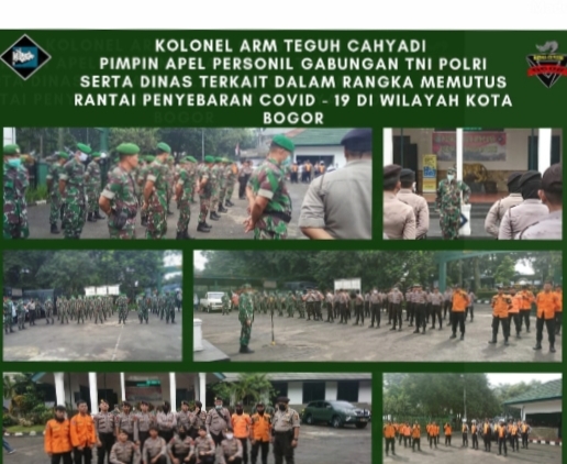 Kolonel Arm Teguh Cahyadi memimpin Apel personil gabungan TNI – POLRI serta dinas terkait dalam persiapan upaya memutus rantai penyebaran Covid 19 di wilayah Kota Bogor,