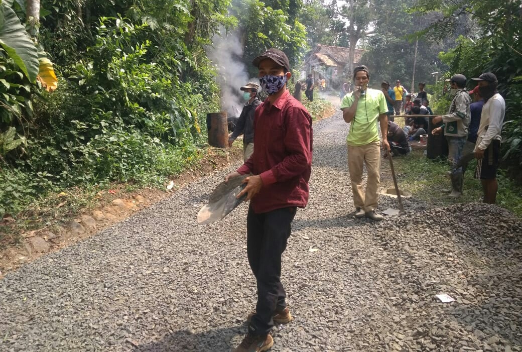 “Kepala desa Maman dan di dampingi tim pelaksana kegiatan (TPK) saat berbincang dengan awak media sorot peradilan pada Rabu,05/08/2020 di lokasi kegiatan mengatakan” dengan adanya pembangunan akses jalan poros desa ini,akan membuat percepatan ekonomi desa,pembangunan poros desa yang menggunakan lapen kami betul betul menjalankan aturannya.