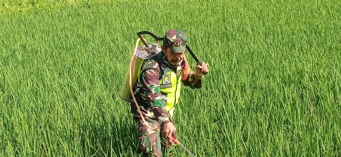 ” Penyemprotan dilakukan bertujuan untuk menjaga tanaman agar terhindar dari segala serangan hama dan penyakit sehingga pertumbuhan tanaman padi dapat menghasilkan panen yang optimal”, Sambungnya.