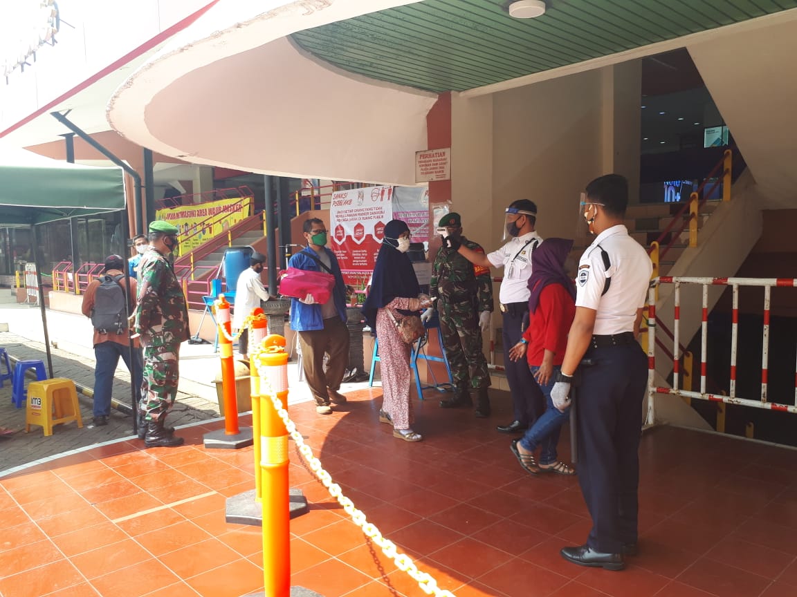 BOGOR – Sorotperadilan.com | Kodim 0606/Kota Bogor, Jajaran personil Koramil 06 – 05 / Bogor Utara melaksanakan pengamanan Objek Mall Plazza jambu dua , Swalayan ADA dan Pasar Induk Jambu di wilayah kecamatan Bogor utara dalam rangka kegiatan rutin Sosialisasi Adaptasi Kebiasaan Baru ( AKB ), guna memutus rantai penyebaran covid – 19, Minggu ( 23/08 ).