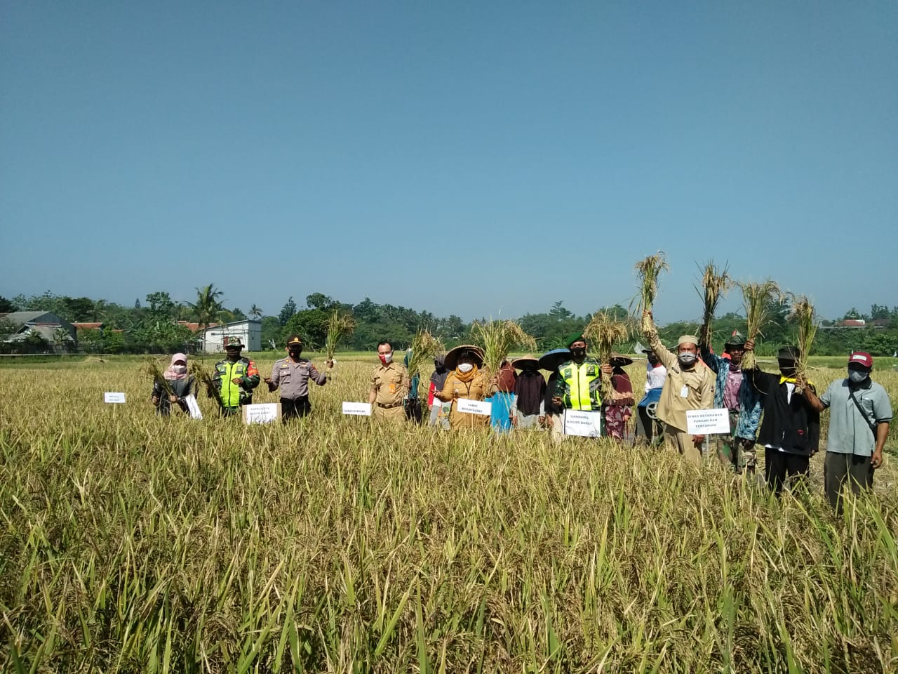 Bogor,–Sorotperadilan.com | Kodim 0606/Kota Bogor, Koramil 06-04/Bogor Barat Babinsa Kelurahan Bubulak Serka Rustono Ikuti Pelaksanaan Panen Raya Dalam Rangka Mensukseskan Program Mandiri dan Ketahanan Pangan (Mantap) lokasi persawahan kelompok tani Bina Sejahtera rt 4, rw 11, kel. Bubulak, Babinsa kel Bubulak Kecamatan Bogor Barat Kota Bogor, Selasa (25/8/20).