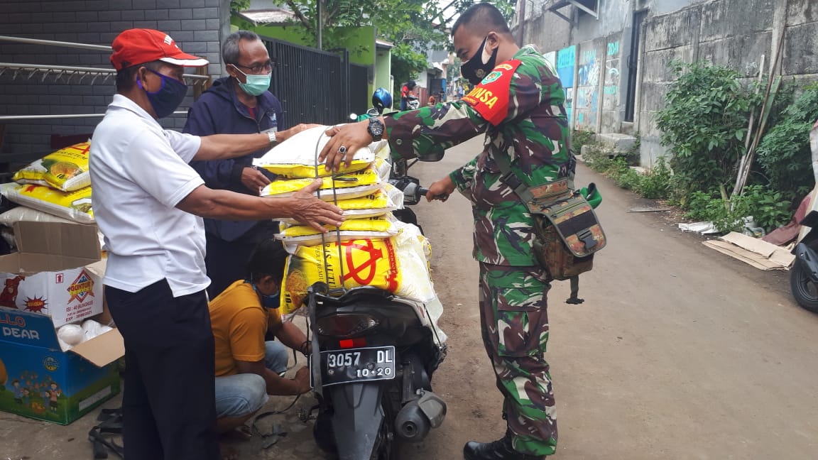 Bogor – Sorotperadilan.com | Pelda Selamet Hariadi,Babinsa Kelurahan Cioarigi ,Koramil 06-05/Bogor Utara( Kodim 0606/Kota Bogor ), Monitoring pendistribusian sembako dari Bantuan Sosial Kemensos kepada 516 Keluarga Penerima Manfaat ( KPM) ,bertempat di E Warung Obay Rt 03/10 kel,Ciparigi, Kecamatan Bogor Utara , Kota Bogor , Minggu (20/09).