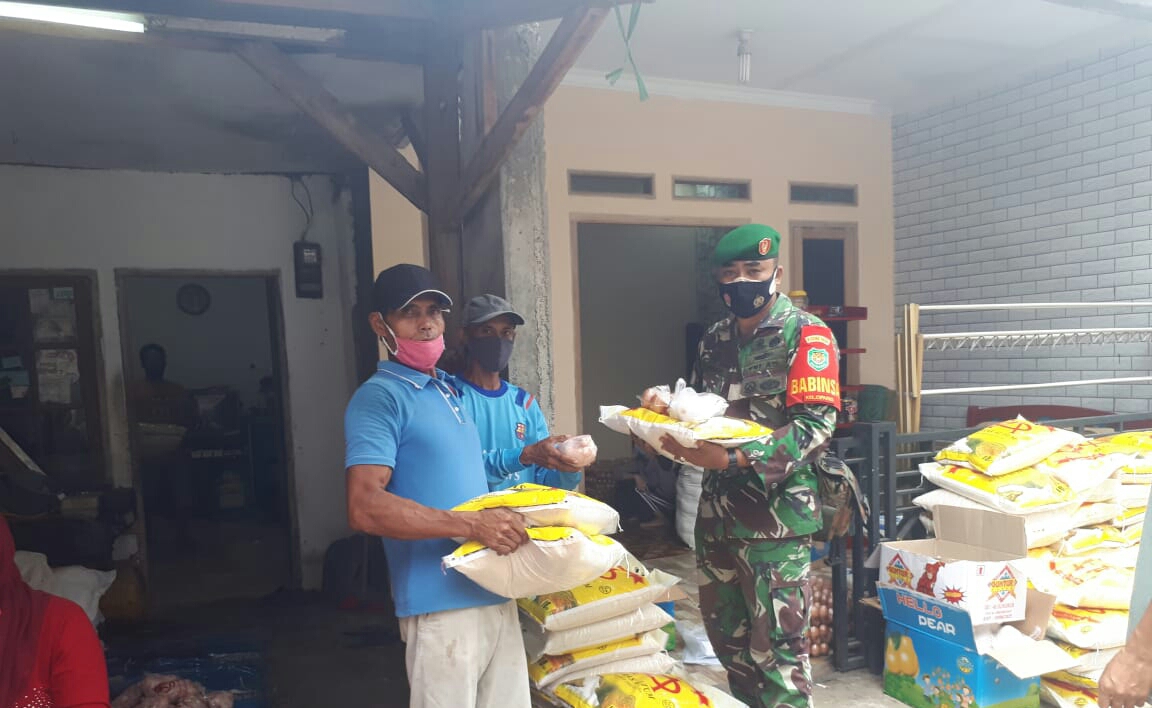 ” Giat bansos rawan kerumunan massa dan pelanggaran Protokol Kesehatan , untuk itu kami mengawasi kegiatan ini agar sesuai dengan protokol kesehatan “,Ujar Babinsa Pelda Selamet Hariadi.