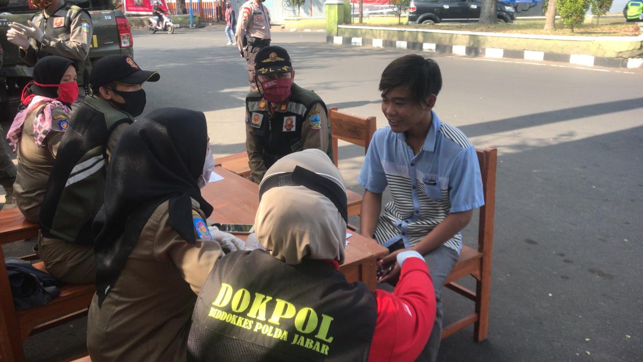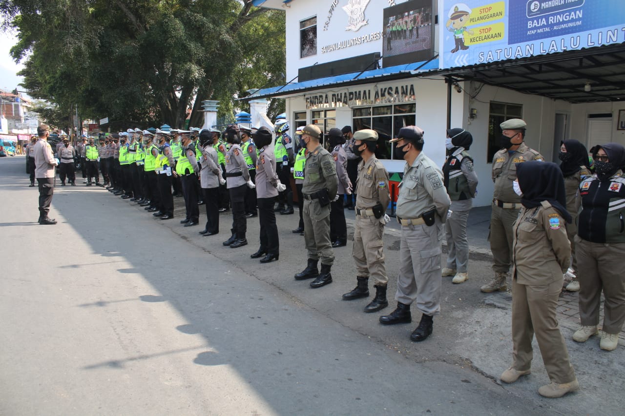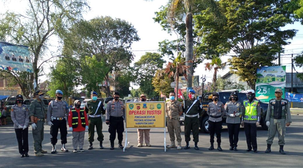 Kegiatan Ops Yustisi Pendisiplinan masyarakat dalam penggunaan Masker, Polres Garut bersama TNI dan Satpol PP Kab Garut terus melakukan Ops Yustisi dengan sasaran Pengguna jalan dan sejumlah Pusat keramaian diwilayah Bunderan Tarogong dan Bunderan Simpang lima.