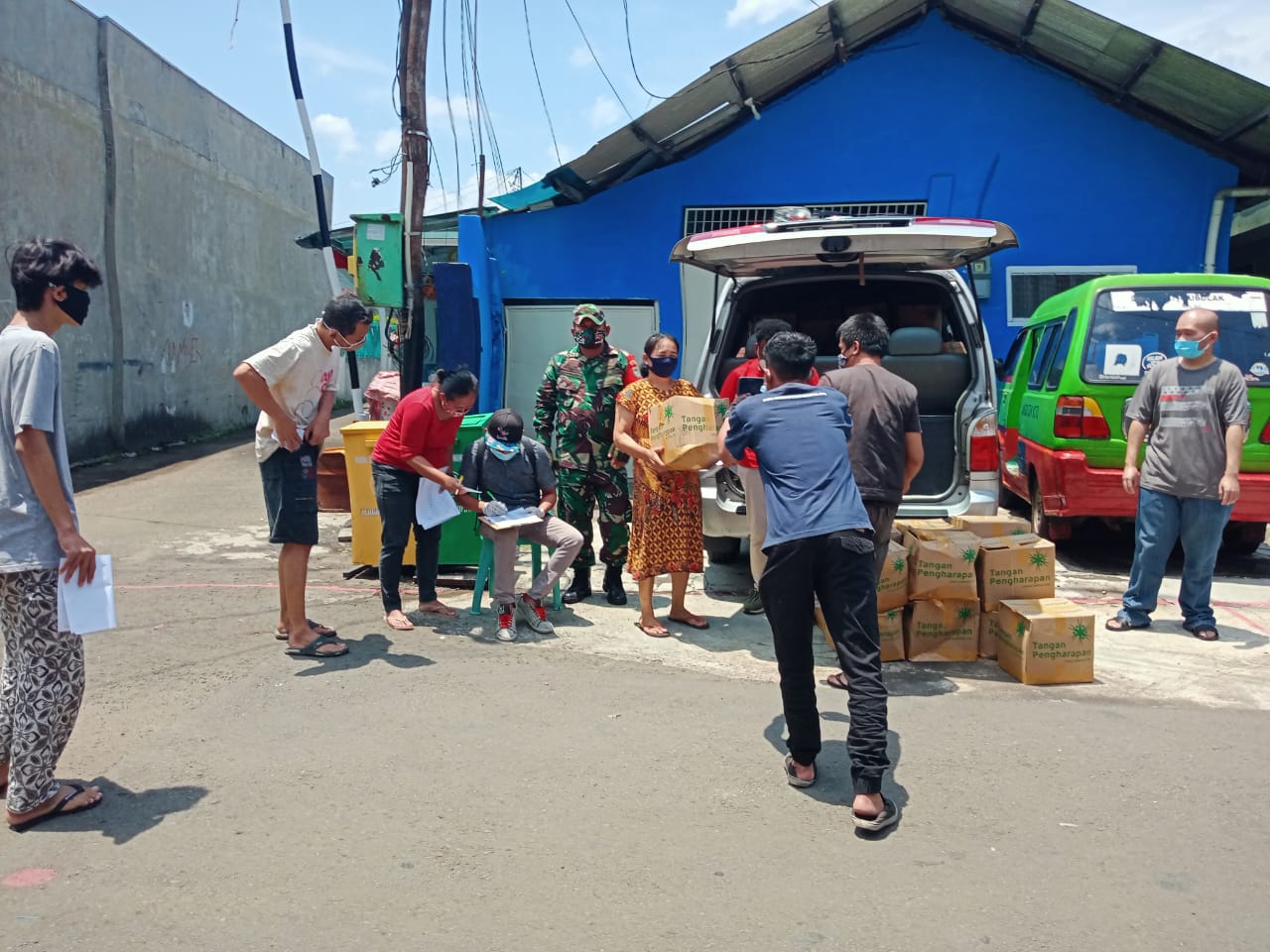 Bogor,–Sorotperadilan.comml Babinsa Koramil 0601/Bogor Tengah Kodim 0606/Kota Bogor Sertu Sarip Usman Ikut Serta mendampingi pelaksanaan Pembagian Bansos Yayasan Tangan Pengharapan dari Jakarta kepada masyarakat Kelurahan Babakan Pasar Kecamatan Bogor Tengah Kota Bogor Dengan Jumlah bansos untuk 150 KK, Senin (28/09/2020).