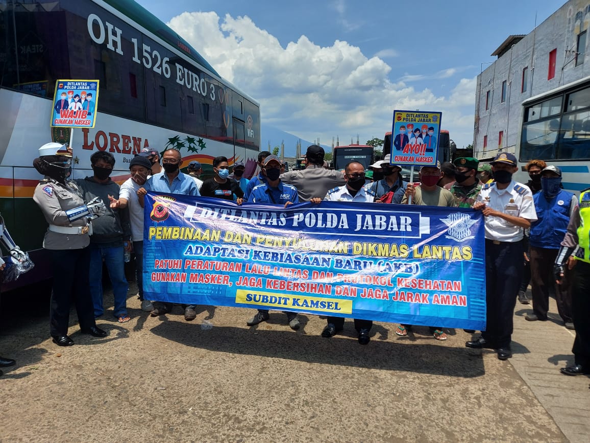 Bogor – Sorotperadilan.com | Sosialisasi Adaptasi Kebiasaan Baru (AKB) oleh subdit kamsel Dit Lantas Polda Jabar bersama Satlantas Polresta Bogor Kota, kepada masyarakat pengguna Transportasi Umum baik Supir/Awak Bus ,Pengunjung ,Pedagang maupun Penumpang di Terminal Baranangsiang ,Kota Bogor, Provinsi Jawa Barat, Selasa ( 06/10/2020 ) Pagi.