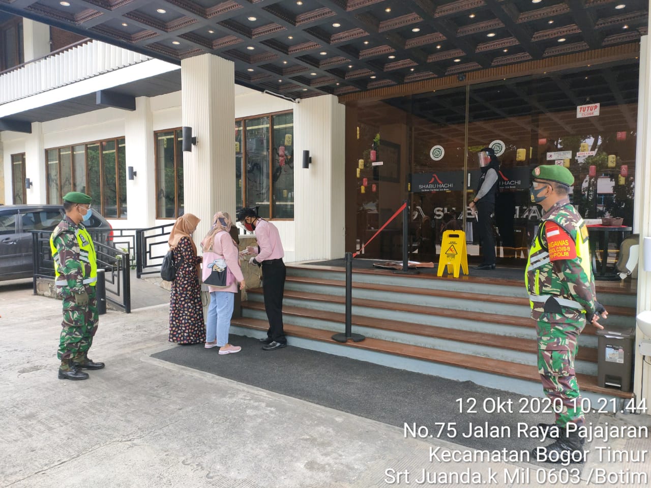 Bogor – Sorotperadilan.com | Jajaran Personil Koramil 06-03/Bogor Timur ( Kodim 0606/Kota Bogor ), Melaksanakan kegiatan Monitoring dan Pengamanan Protokol Kesehatan Area Objek Vital.