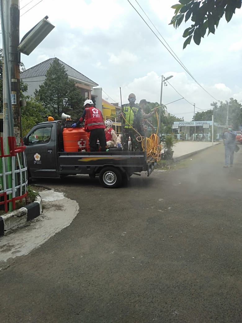 Babinsa Kel. Tanah Baru, Bhabinkantibmas Kel. Tanah Baru, Kasi Ekbang Kelurahan Bapak Wawan Sahidi dan drag, ketua rw 8 Bapak Asep Tjahyana, Ketua rw 9 Bapak Anang imron, Tim Penyemprot PMI, Tim Sibat Kelurahan Tanah Baru dan Unsur Puskesmas Tanah Baru Bogor Utara.