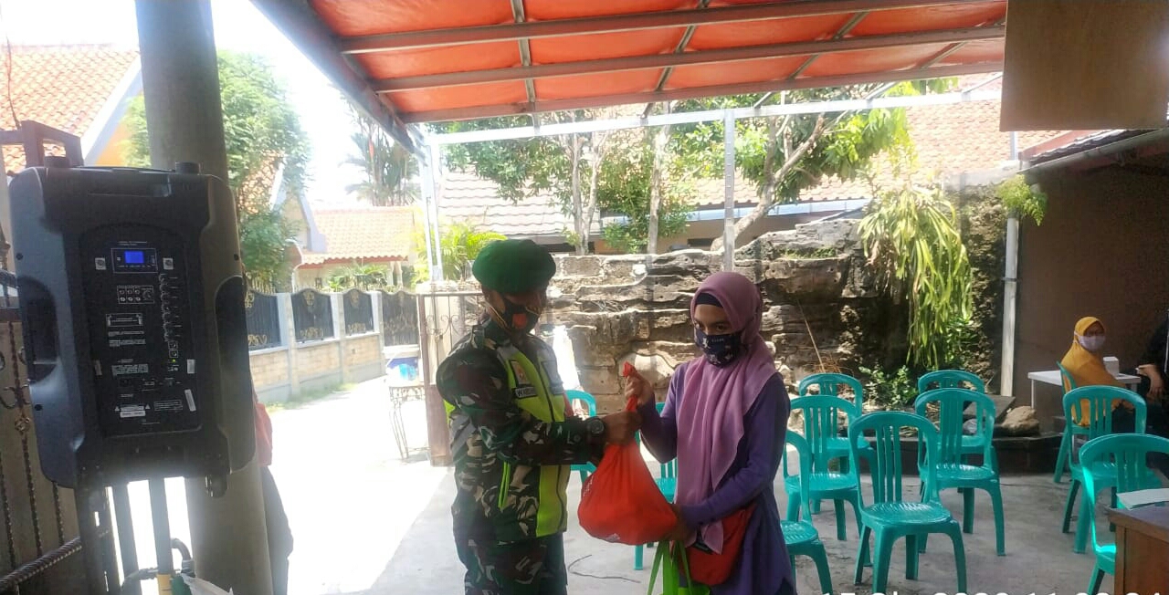 Serma Wardani Babinsa Koramil 0606/Tanah Sareal Kodim 0606/Kota Bogor Monitoring Pendistribusian Bantuan BPNT Reguler Program Sembako yang bertempat di Gang .Mantri Guru Rt 02/01 Kelurahan Kedung Jaya Kecamatan Tanah Sareal Kota Bogor, Kamis (15/10/2020).