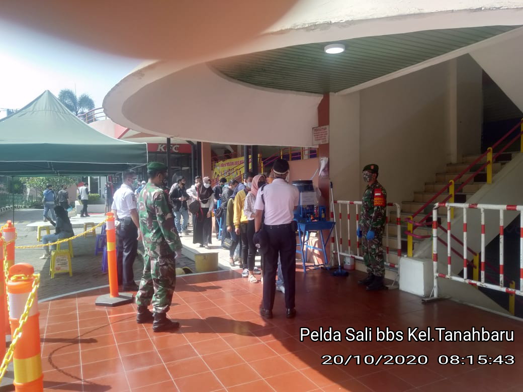 Bogor – Sorotperadilan.com | Jajaran Personil Koramil 06-05/Bogor Utara ( Kodim 0606/Kota Bogor ), Melaksnakan kegiatan Monitoring dan Pengamanan Protokol Kesehatan Area Objek Vital.