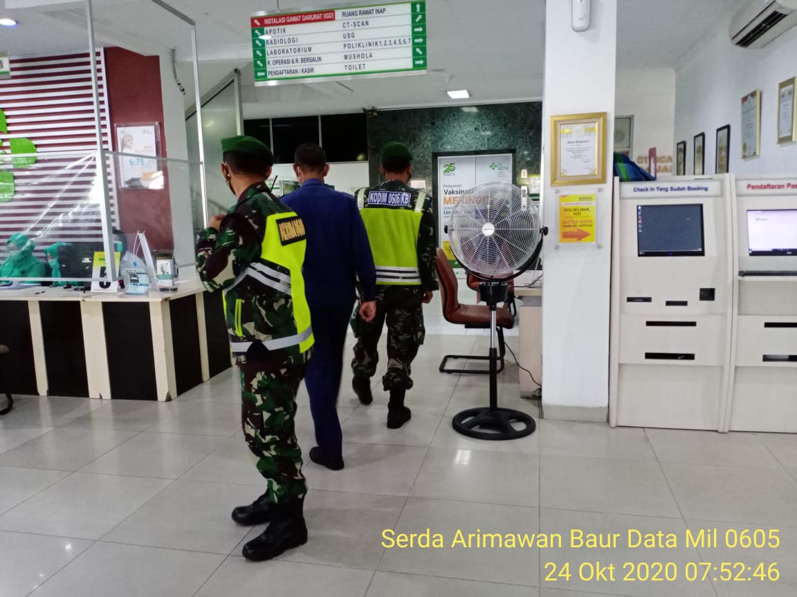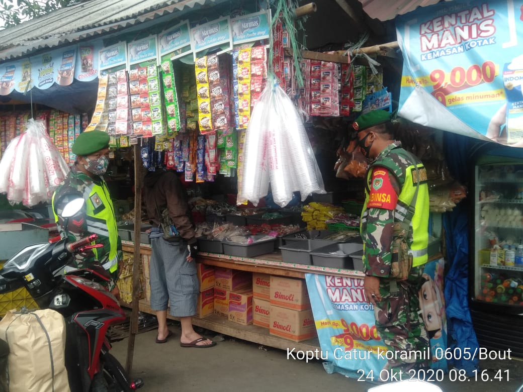 Jajaran Personil Koramil 06-05/Bogor Utara ( Kodim 0606/Kota Bogor ), Melaksnakan kegiatan Monitoring dan Pengamanan Protokol Kesehatan Area Objek Vital.