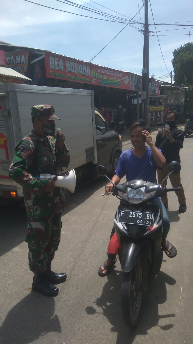 Bogor,–Sorotperadilan.com l Pelda Sali Poerbojo Babinsa Koramil 0605/Bogor Utara Kodim 0606/Kota Bogor, Melaksanakan Kampanye Masif Protokol Kesehatan 3 M Kepada warga Masyarakat di Kelurahan Tanah Baru Kecamatan Bogor Utara Kota Bogor, Selasa (03/11/2020).