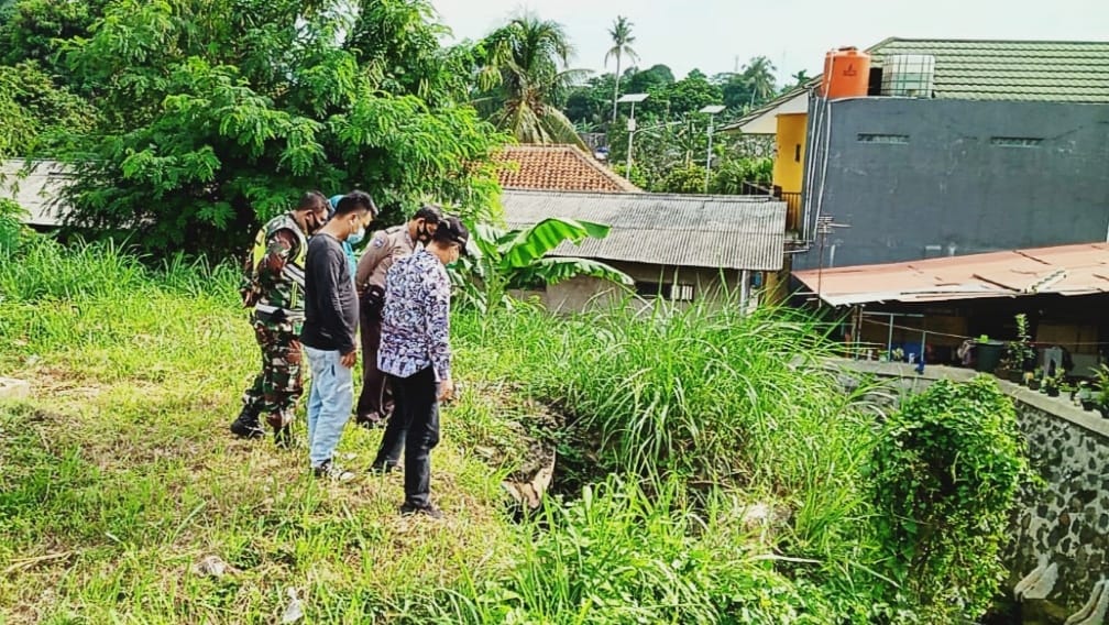 Bogor,–Sorotperadilan.com l Sertu Suparno Babinsa Koramil 0605/Bogor Utara Kodim 0606/Kota Bogor, Monitoring Pengecekan Saluran Air dan Pengecekan Tebing yang Longsor akan di Turab di Wilayah Kelurahan Cimahpar Kecamatan Bogor Utara Kota Bogor, Sabtu (07/11/2020).