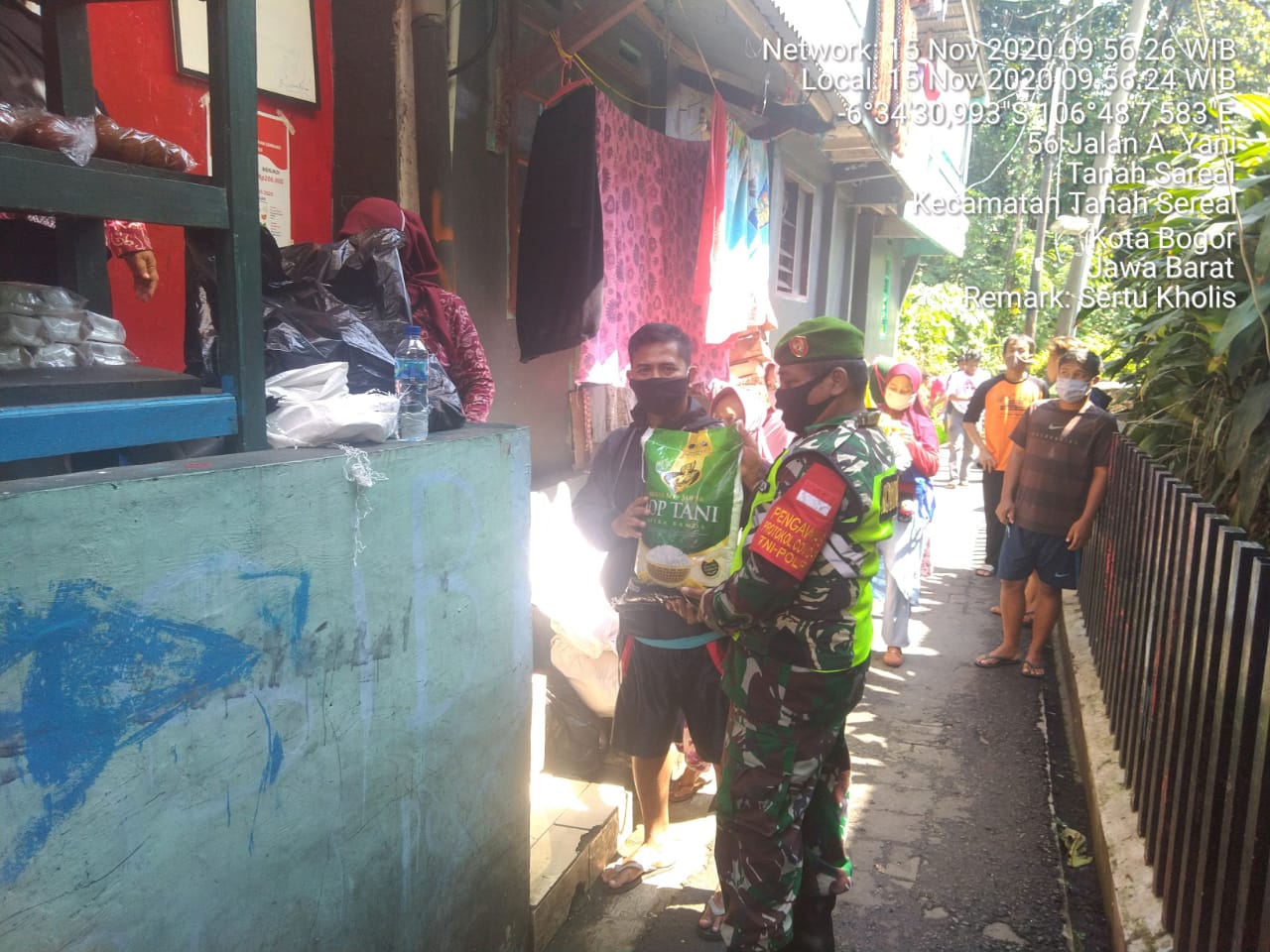 Bogor – Sorotperadilan.com | Sertu Kholis Babinsa Koramil 0606/Tanah Sareal Kodim 0606/Kota Bogor, Monitoring Penyaluran BPNT perluasan Sembako kepada Warga Kel.Tanah Sareal Kepada Penerima Berjumlah 525 KPM yang di Salurkan di E-Warung Lestari Tempat Penyaluran Paket Sembako Senilai Rp.200.000.- (dua ratus ribu rupiah), Pendistribusian berlangsung di RT.05 RW.02 Kel.Tanah Sareal Kec.Tanah Sareal Kota Bogor.