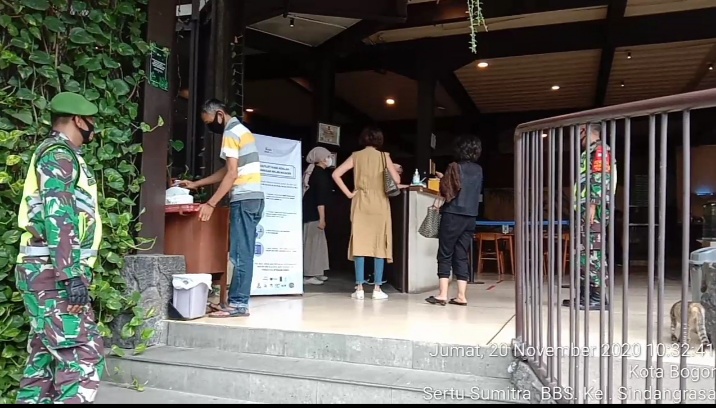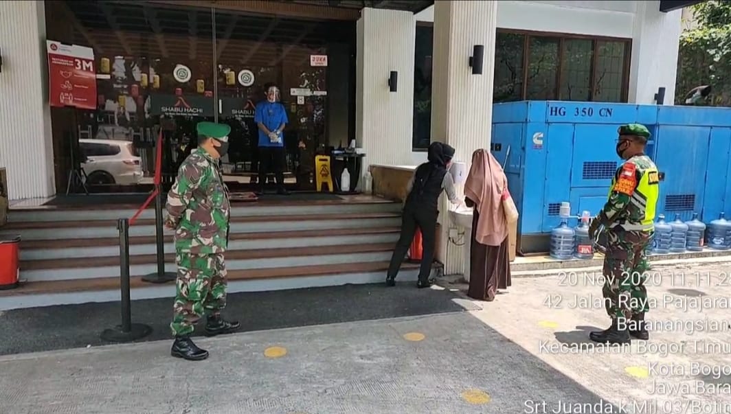 Bogor – Sorotperadilan.com | Guna memutus rantai penyebaran COVID 19, Jajaran Personil Koramil 06-03/Bogor Timur ( Kodim 0606/Kota Bogor ), Melaksanakan kegiatan Monitoring dan Pengamanan Protokol Kesehatan Area Objek Vital.