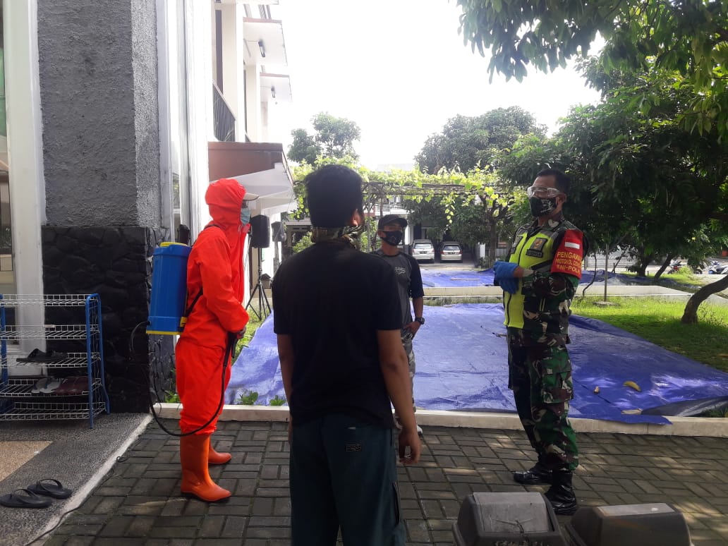 Bogor,-Sorotperadilan.com |Sertu Marjito Babinsa Kelurahan Cibadak anggota Koramil 0606/Tanah sareal-Kodim 0606/Kota Bogor, melaksanakan penyemprotan disinfektan bersama warga binaan guna memutus penyebaran virus covid-19 yang didasari kesadaran warga atau anggaran swadaya warga Rw 015, Jumat (20/11/2020).