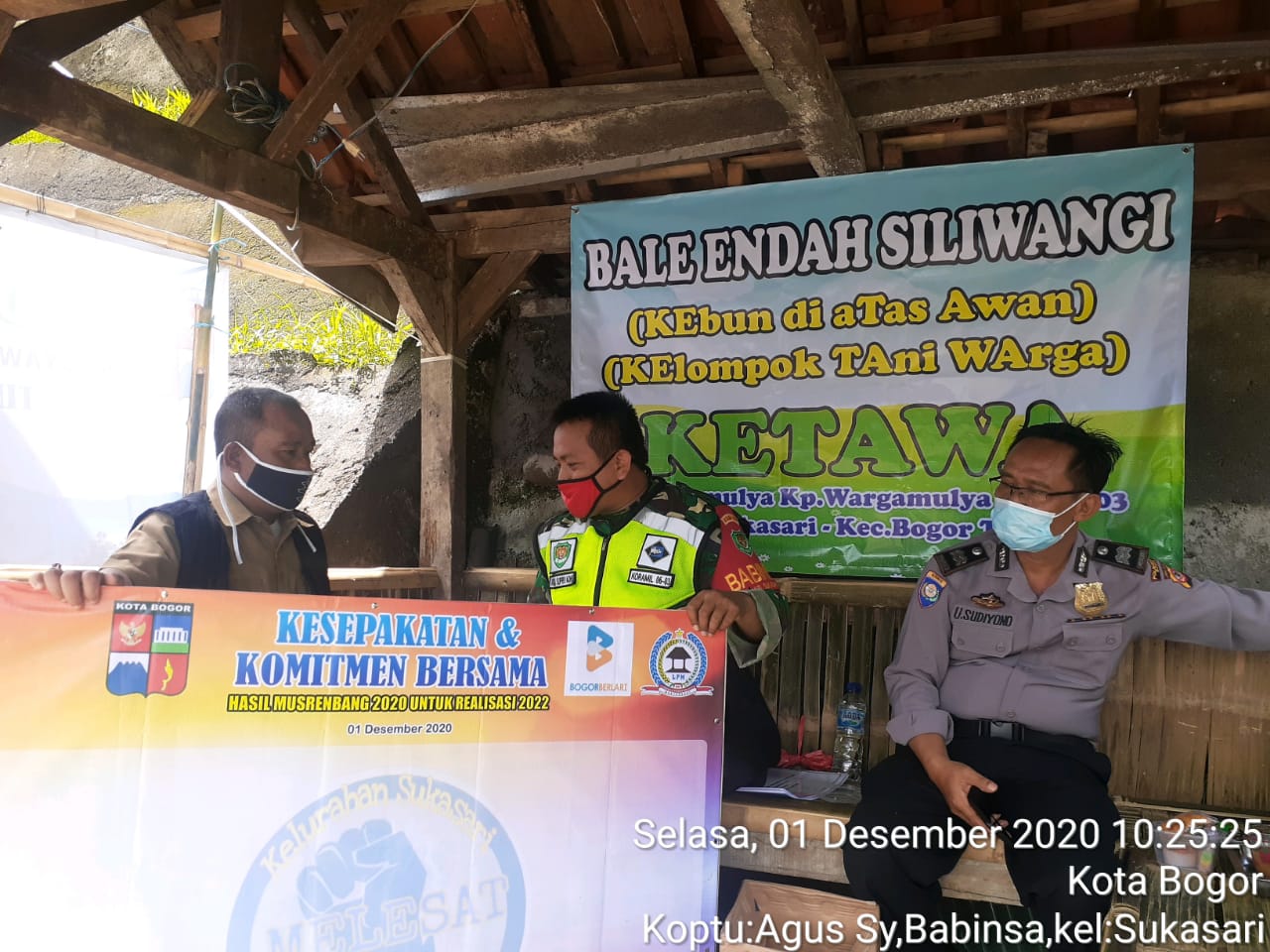 Bogor – Sorotperadilan.com | Koptu Agus Supriyadhi Babinsa Koramil 0603/Bogor Timur Kodim 0606/Kota Bogor, Melaksanakan Giat Acara Musyawarah Rencana Pembangunan (Musrembang) Tahun 2022 Tingkat Kelurahan Sukasari yang bertempat di Area Kebun Ketawa (Kelompok Tani Warga) di jl Sukamulya kp warga mulya Rt 02/Rw 03 Kelurahan Sukasari Kecamatan Bogor Timur Kota Bogor, Selasa (01/12/2020).