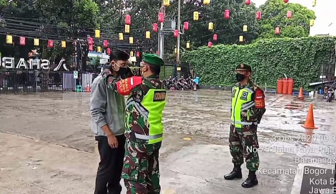 Bogor – Sorotperadilan.com | Guna memutus rantai penyebaran COVID 19 Jajaran Personil Koramil 06-03/Bogor Timur ( Kodim 0606/Kota Bogor ), Melaksanakan kegiatan Monitoring dan Pengamanan Protokol Kesehatan Area Objek Vital.