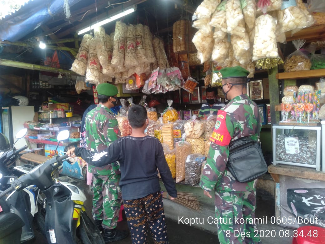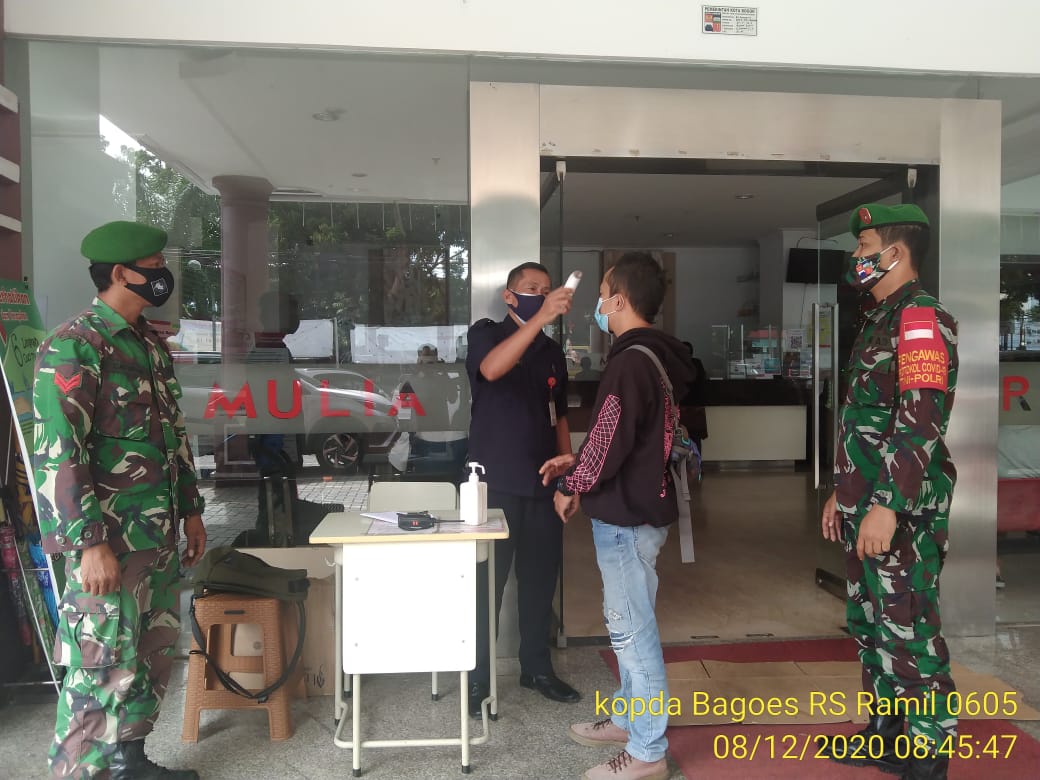 Bogor – Sorotperadilan.com | Jajaran Personil Koramil 06-05/Bogor Utara ( Kodim 0606/Kota Bogor ), Melaksanakan kegiatan Monitoring dan Pengamanan Protokol Kesehatan Area Objek Vital.