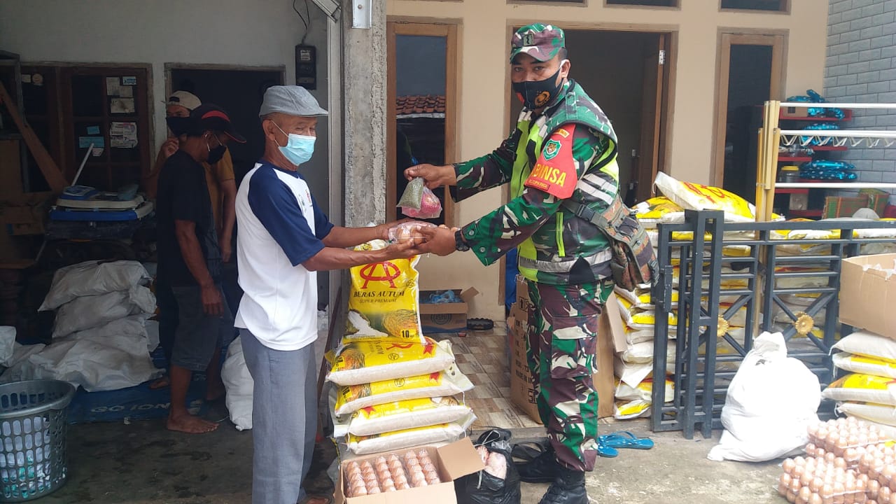 Bogor – Sorotperadilan.com | Pelda Selamet Hariadi Babinsa Koramil 0605/Bogor Utara Kodim 0606/Kota Bogor, “Kegiatan pendistribusian sembako perluasan tahap ke 9 Covid-19 dari bantuan kemensos berjumlah 516 KPM kepada warga Kelurahan Ciparigi yang bertempat di E-Warung Obay Jln Ciburial Rt 03 Rw10 Kelurahan Ciparigi Kecamatan Bogor Utara Kota Bogor, Minggu (13/12/2020).