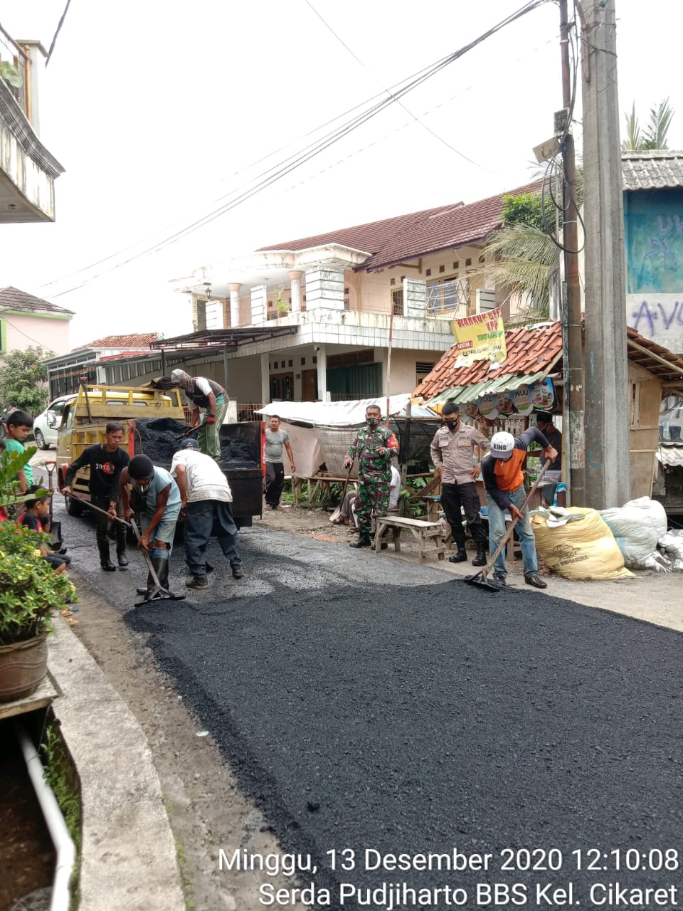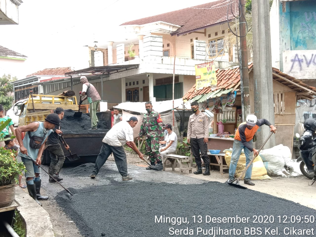 Bogor – Sorotperadilan.com | Serda Pudji Harto Babinsa Koramil 0602/Bogor Selatan Kodim 0606/Kota Bogor, “Bersama Babinkamtibmas Monitoring Kegiatan Pengaspalan Jalan di wilayah Binaan Kelurahan Cikaret di Jalan Gg Kosasi JB di Wilayah RT 03 RW 08 Kelurahan Cikaret Kecamatan Bogor Selatan Kota Bogor, Minggu (13/12/2020).