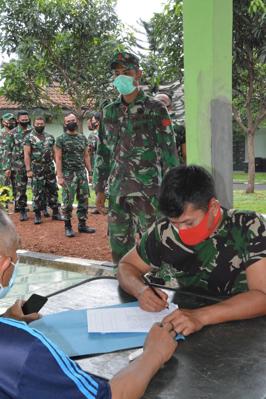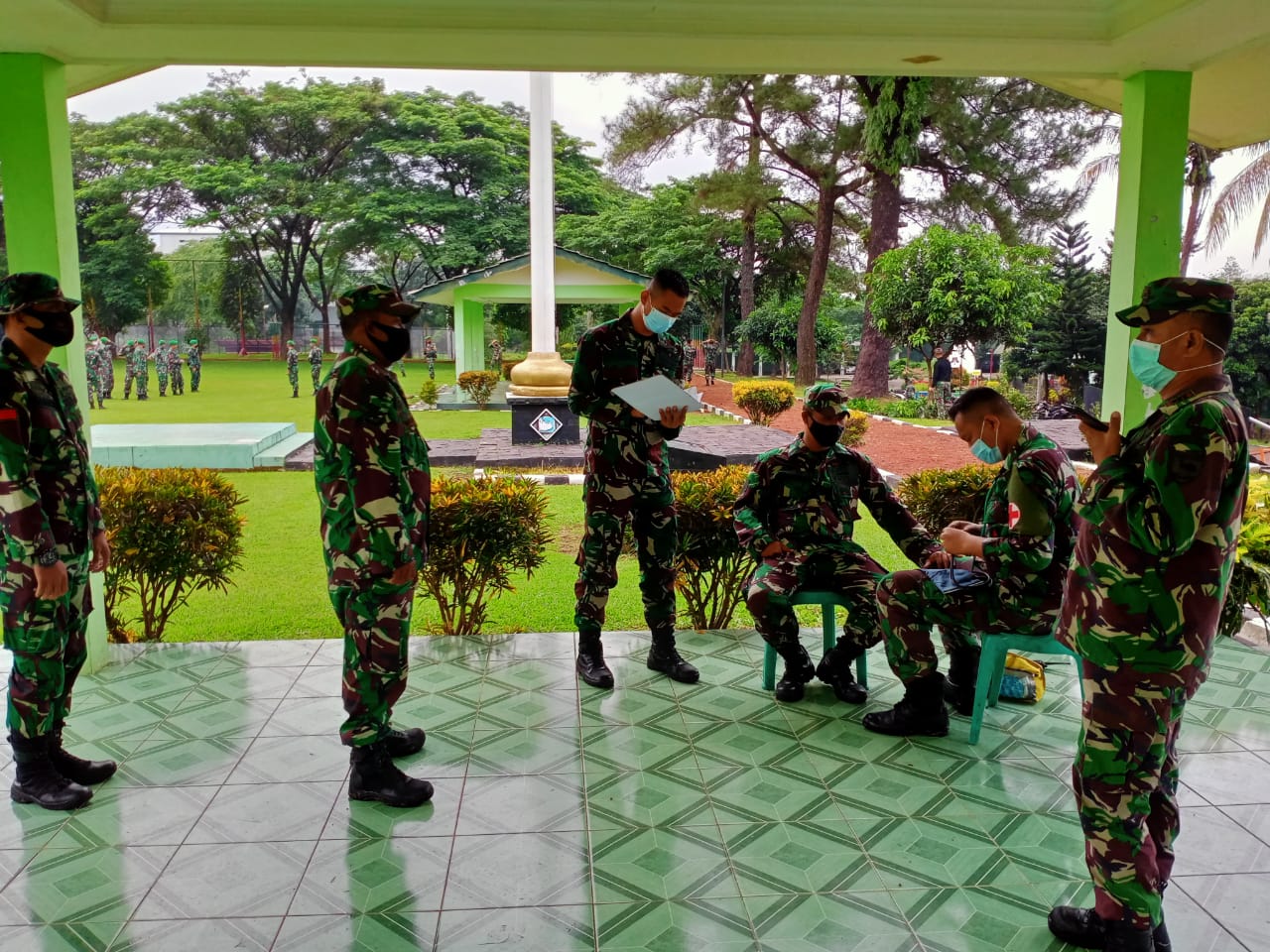 Kasrem memantau 20 Personil TNI purna tugas yang sedang melaksanakan isolasi mandiri di Yonif 315/Grd.