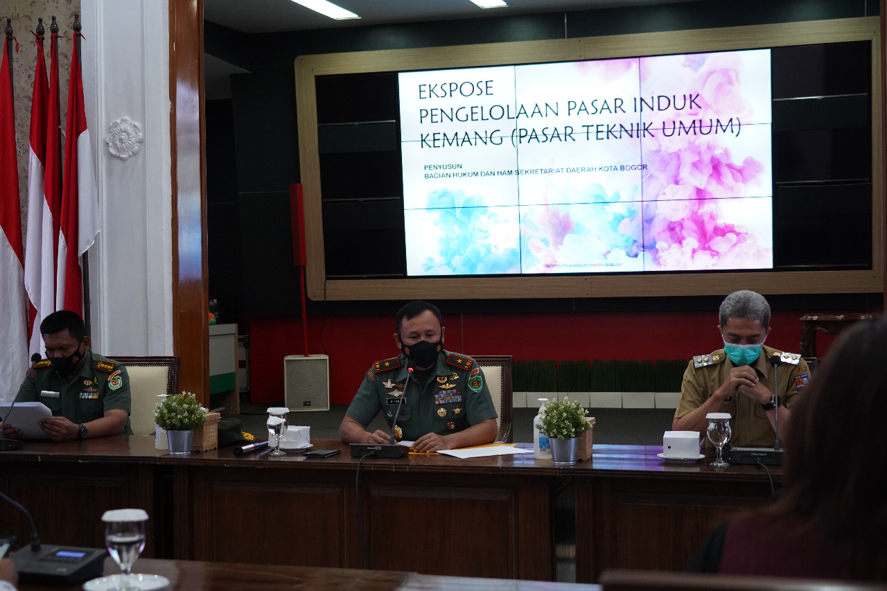 Bogor, –Sorotperadilan.com l Bertempat di ruang rapat Sri Bima Balaikota Bogor, Danrem 061/SK Brigjen TNI Achmad Fauzi S.I.P.,M.M. menghadiri koordinasi pelaksanaan pe ninjauan lapangan untuk pemetaan permasalahan pasar tekum kemang, Senin (22/3).