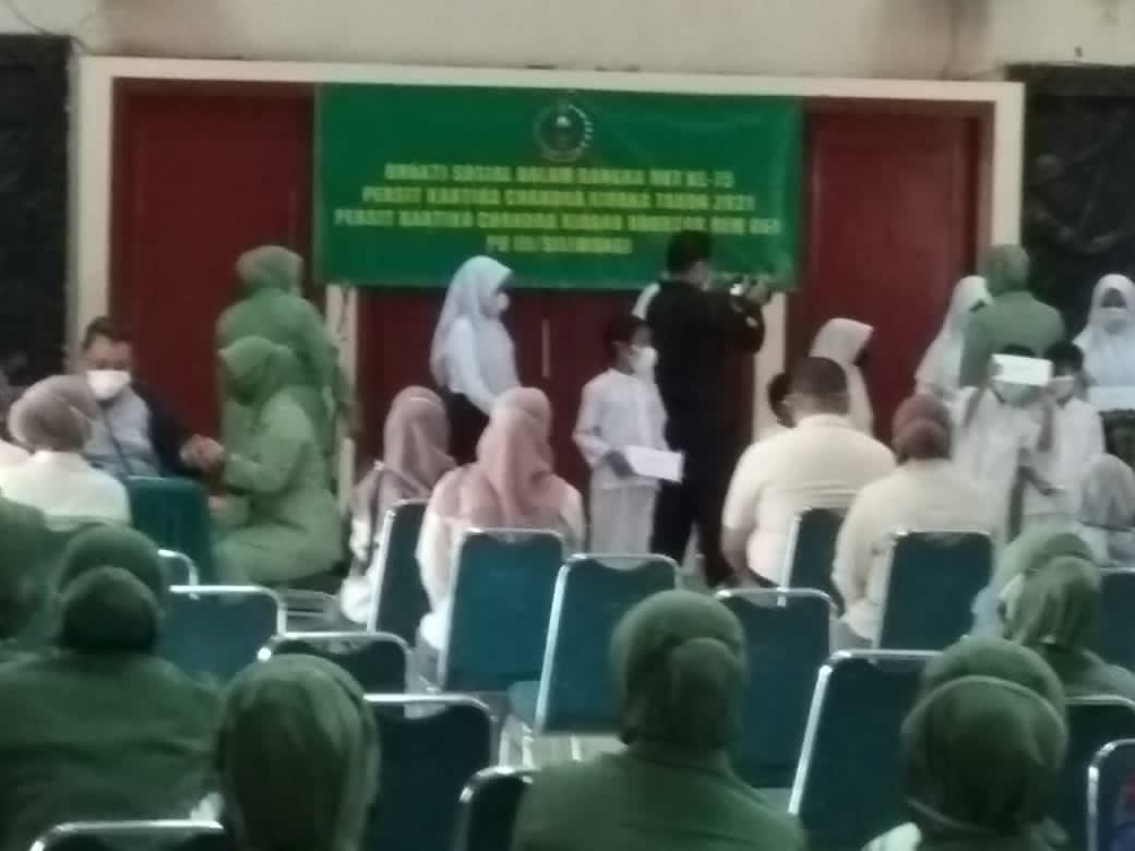 Adapun Rangkaian Kegiatan di acara Tersebut, Pembukaan, Pengarahan Ibu Ketua Persit KCK Koorcab Rem 061/SK, Pemberian bansos ke Warakawuri oleh ibu ketua, Pemberian tali asih kepada anak yatim dan Pemberian bansos kepada tenaga kesehatan. (Erris)