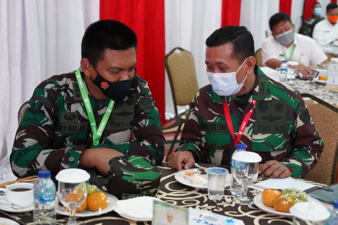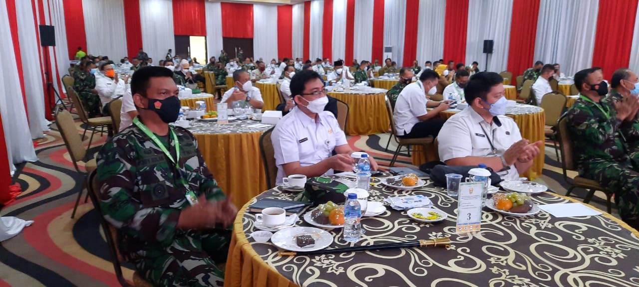 Bogor,–Sorotperadilan.com l Dandim 0606/Kota Bogor Kolonel lnf Roby Bulan S.l.P Bersama Pasiter Dim dan Jajaran Danramil 0606/Kota Bogor Mengikuti Giat Komsos Aparat Pemerintah Tingkat Pusat TA. 2021 yang di pimpin Brigjen TNI Toto Nurwanto (Waas Bid Tahwil, Komsos dan Bakti TNI), Bertempat di Hotel Lorin Jl Lingkar Luar Bogor Km 32 Sentul, Rabu (24/3/2021).