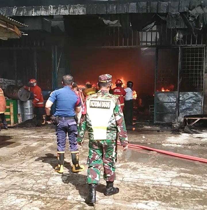 Bogor Kota,–Sorotperadilan.com l Telah Terjadi Kebakaran Gudang Kimia di RT.01 RW.01 Kel.Sindangrasa, Kecamatan Bogor Timur Kota Bogor, Dalam Pantauan Awak Media, di Lokasi Kebakaran Nampak Turut membantu pemadaman kebakaran Gudang kimia, Babinsa Anggota Kodim 0606/Kota Bogor, Koramil 06-03/Bogor Timur bersama Damkar, dan Warga Aparat lain nya yang Juga mengamankan area.