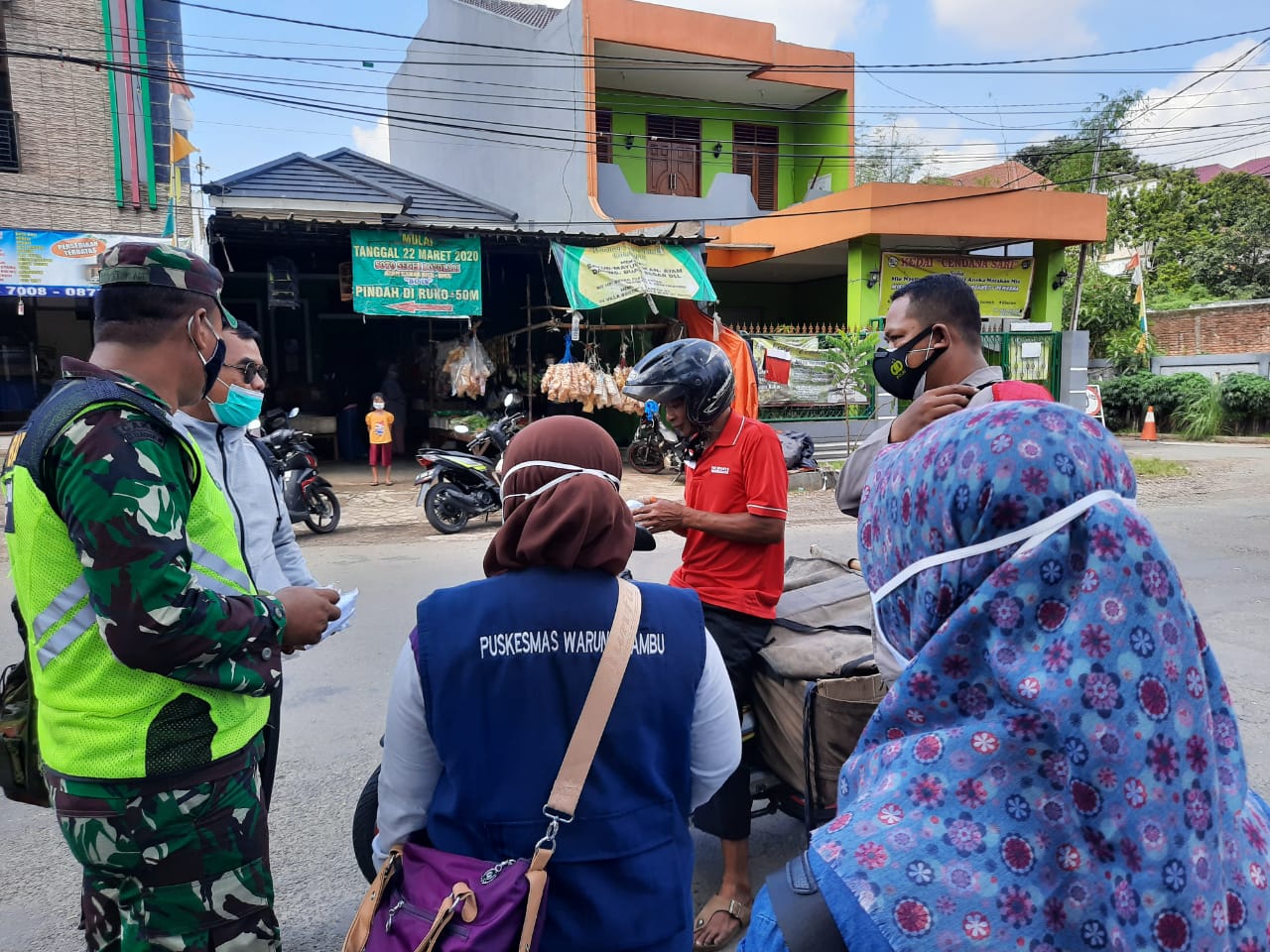 Kegiatan Babinsa yang Terus melaksanakan War war dan Pembagian Masker warga Masyarakat, pada kegiatan ini dengan tetap menggunakan masker yang dilakukan Babinsa bersama Puskesma Jambu dan Staf Kelurahan yang terus di tingkatkan agar warga masyarakat benar-benar mengerti kalau wabah ini belum berakhir.