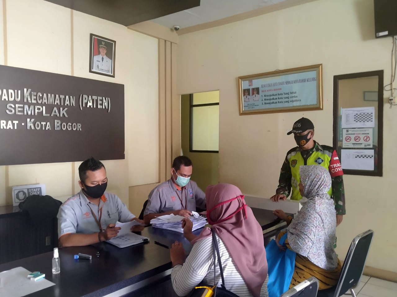 Dalam rangka membantu mengamankan dan mendampingi warga diwilayah binaan serta melancarkan penyaluran bantuan sosial tunai dari Kemensos Tahap 3 dan 4 kepada 694 Keluarga Penerima Manfaat (KPM) warga Kelurahan Semplak yang disalurkan bertempat di kantor Kelurahan Semplak, Rabu (14/4/2021).