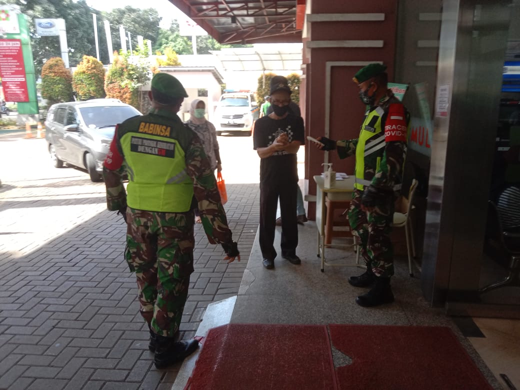 KOTA BOGOR, SOROTPERADILAN.COM — Jajaran Personil Koramil 06-05/Bogor utara , Kodim 0606/Kota Bogor , Gelar Pengamanan Protokol Kesehatan Covid-19, Sabtu ( 17/4/2021 ) Pagi.