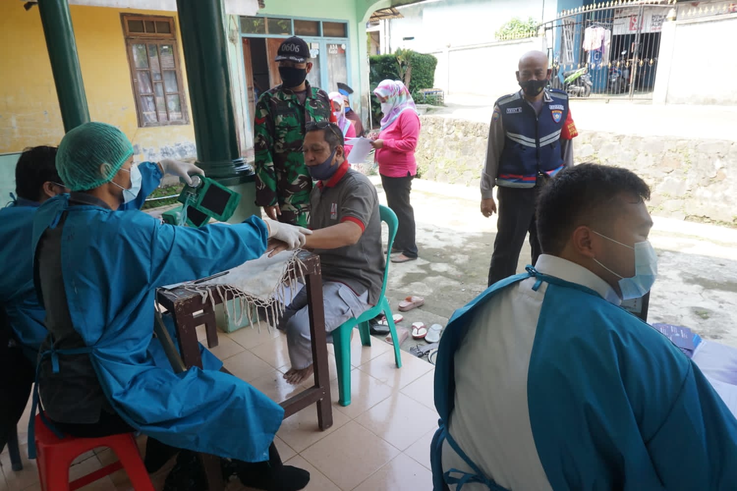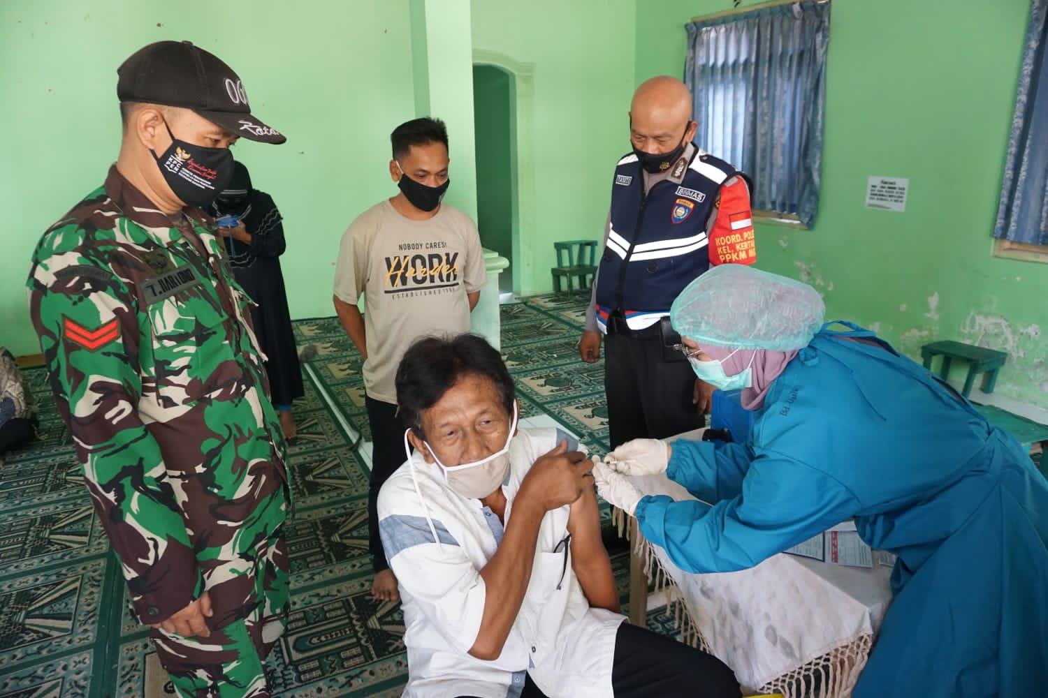 Pada kesempatan tersebut, Koptu Tonton Hartono bersama Bhabinkamtibmas dan Tiga Pilar mengecek langsung pelaksanaan pemberian Vaksinasi Covid-19 kepada Lansia yang sudah terdaftar sebagai penerima vaksin.