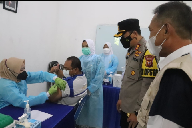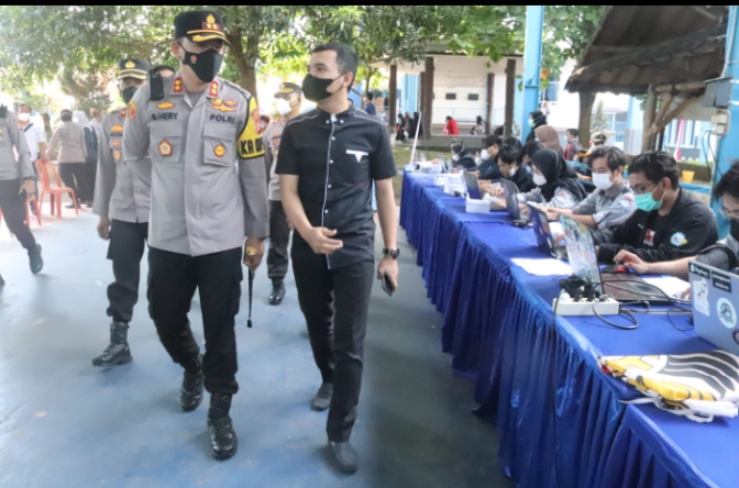 “Vaksinasi ini, salah satu kunci selamat dari pandemi Covid-19. Tentunya ini perlu kerja keras, sinergitas dengan seluruh elemen sehingga progres ini bisa berjalan dengan baik,” ucap Perwira Polisi yang terkenal dengan keramahannya itu.