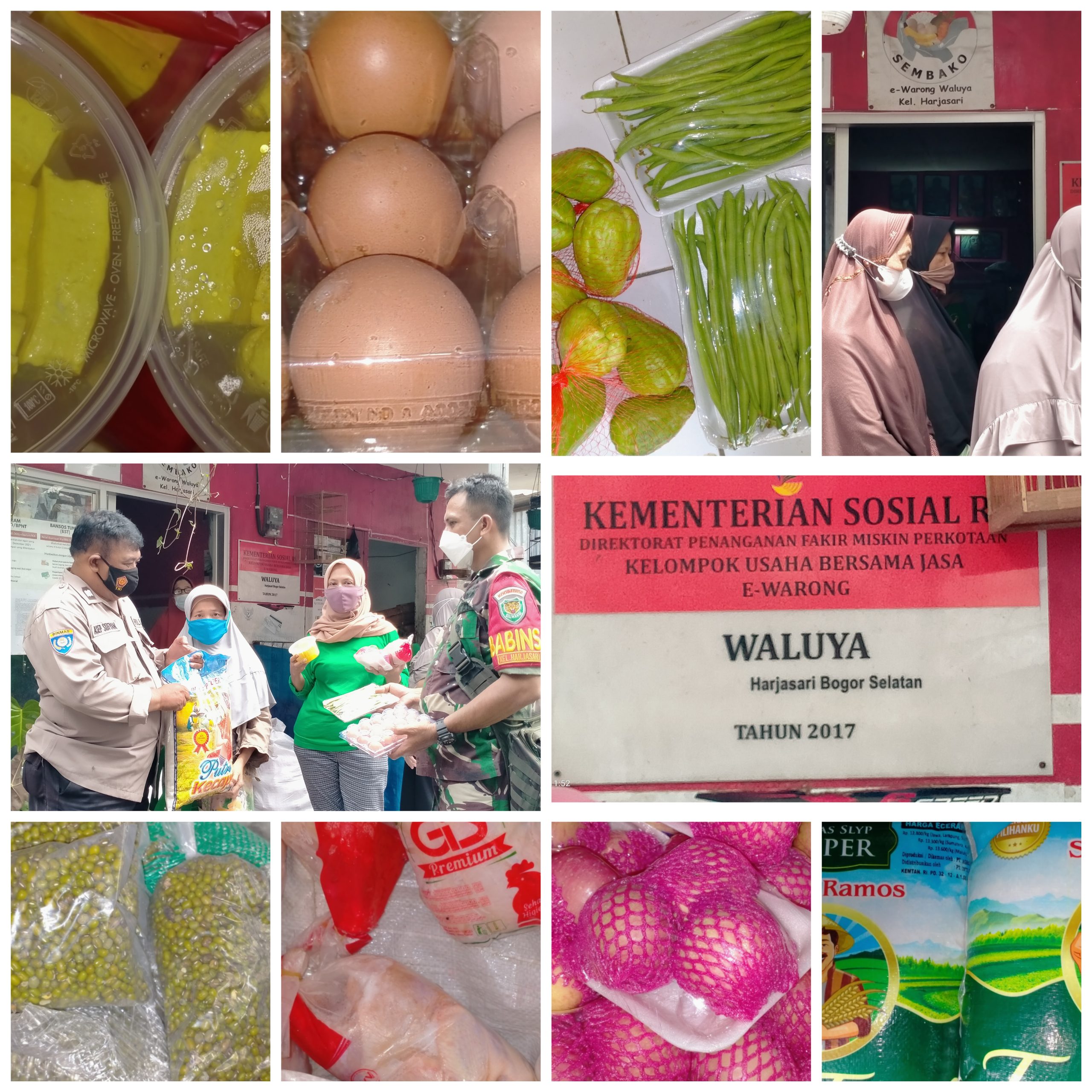 Bogor,-sorotperadilan.com | E-Wareong Waluya yang berlokasi di Rt 1 Rw 10 Kelurahan Harjasari Kecamatan Bogor Selatan menyalurkan Bantuan Pangan Non Tunai (BPNT) dan bantuan sosial PPKM dari Pemerintah melalui Kemensos guna membantu kebutuhan sehari hari masyarakat, adapun bantuan pangan KPM mendapatkan 4 paket sekaligus yang terdiri dari 6 komoditi diantaranya berupa, beras 10kg, ayam satu ekor, sayur kurang lebih 1/2kg, telor 15 butir, kacang hijau dan buah, Senin (20/12/2021)