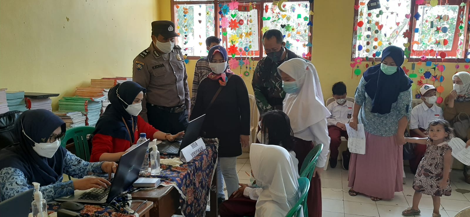 Turut hadir dalam kegiatan vaksinasi di antaranya kasi ppm kecamatan karangtengah, bhabinkamtibmas, babinsa, prangkat desa sukataris,dan komite.