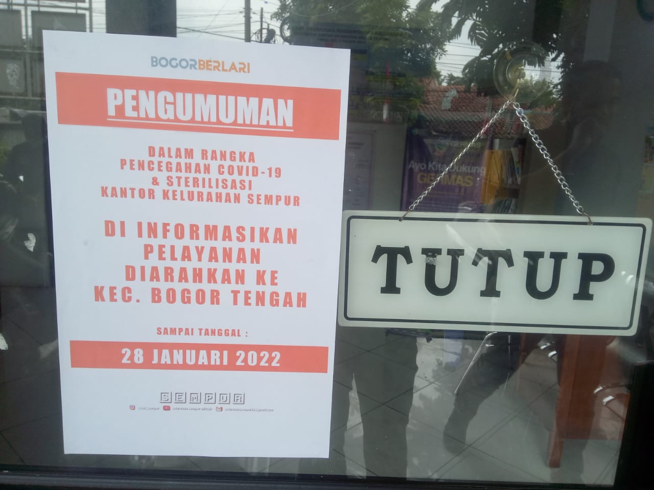 BOGOR,-sorotperadilan.com |Kantor Kelurahan Sempur Kec. Bogor Tengah Kota Bogor sementara ditutup, hal ini dikarenkan dua staff Kelurahan tersebut terjangkit wabah virus Covid -19, namun menurut Dicky Pratama, selaku Lurah Sempur, Kepada awak media Pada Rabu 26 January 2022 Kedua staffnya yang terinfeksi covid belum diketahui jenisnya.