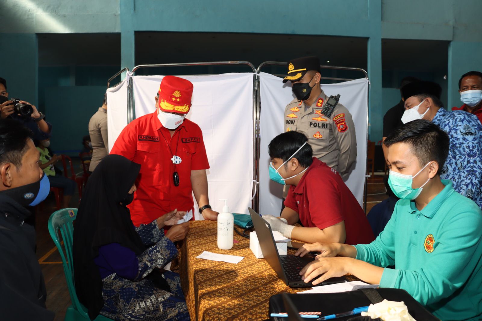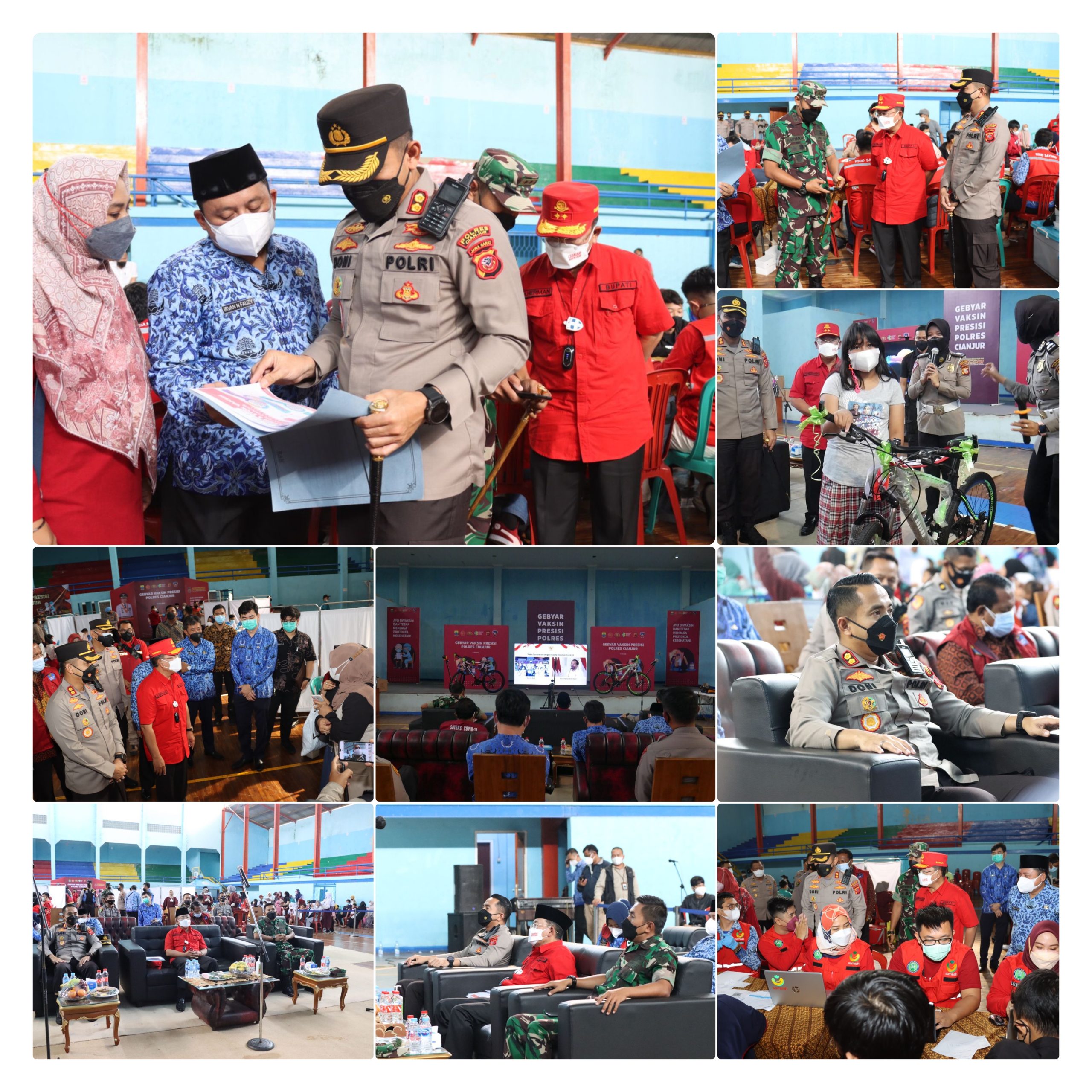 Kapolres Cianjur Bersama Forkopimda Tinjau Lokasi Vaksinasi Yang Ditinjau Langsung Oleh Presiden RI Secara Virtual