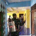Bogor – Sorotperadilan.com | Babinsa Koramil 06-04/Bogor Barat – Kodim 0606/Kota Bogor,Serda Herry Bersama Unsur Muspikel Pasir Mulya melaksanakan Penyemprotan Disinfektan di